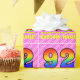 Den här uppgången och roligt 92:a födelsedagskalematerade pappra designen har ett stort nummer "92" med ett färgstarkt regnbågsspektrum som inspirerar gradienten mönster. Det innehåller också budskapet "92:a födelsedagen i Lycklig", följt av en personlig namn. Bakgrunden är en mönster av mörkens rosa och ljust rosa rand som innehåller levande hjärtformer av rosa. Att packa pappert som detta kan vara ett roligt för att packa en födelsedagspresent eller gåva till någon som firar sin 90-årsdag. [~Z0000415]