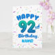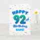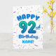 Celebrate their 92nd birthday with a bright, cheerful, and personalizable birthday card! This custom name birthday card features a bold number ninety-two balloon and colorful confetti.