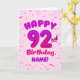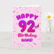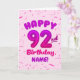 92nd Balloon Number Custom Name Birthday Card Kort