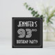 Den främre delen av denna Roaring Twenties-inspirerade födelsedagsinbjudan för nittiotreårsdag har en anpassningsbar namninsats, ett intrikat dekoad-stilinspirerat nummer ”93rd”, texten ”FÖDELSEDAGSFEST!”, och en ram med flera linjer. Framsidans bakgrund är svart som standard, men kan anpassas till en annan färg om så önskas. Baksidan har personliga detaljer om evenemanget, såsom datum, tid, lokal och all annan information som kan vara relevant. Eleganta, lyxiga och anpassningsbara inbjudningar som dessa kan användas för att inbjuda gäster till en födelsedagsfest/ sammankomst som hålls för att fira någons 93-årsdag.