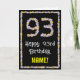 På framsidan av den här roligten, den trädgårdsinspirerade födelsedagskalendern med hälsningskortet, finns meddelandet "Lycklig 93:e födelsedag" och en anpassningsbar mottagare av namn. Det stora talet "93" plus gräns på framsidan har båda blomsikonerna. Insidan har ett hälsning-meddelande från anpassadets födelsedag, eller kan kanske rensas och lämnas tomt om ett meddelande ska skrivas för hand i stället. Ett sådant här hälsningskort på personligens födelsedag kan skickas för att fira någons nittiotredje födelsedag. [~Z0000648]