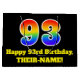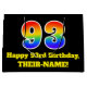 Denna pulserande och roligt-matade presentsäck har ett stort nummer "93" med en regnbågsspektrumövertoning som inspirerade mönster, tillsammans med meddelandet "Lycklig 93:e födelsedag", och en personlig namn. Den har också en bakgrund med svart färgad. En dylik presentpåse på födelsedagen kan vara ett roligt för att slå ihop en gåva eller present som ges till någon som firar sin 93-årsdag. [~Z0000521]