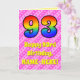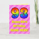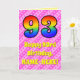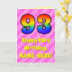 Framsidan av den här roligten och uppemot 93:e födelsedag med det matematiska hälsningskortet har ett stort nummer "93" med ett färgstarkt mönster inspirerat av ett regnbågsspektrum. Det innehåller också budskapet "93:e födelsedagen i Lycklig" och en redigerbar mottagare av namn. Bakgrunden till framsidan är en mönster av mörkens rosa och ljust rosa rand som innehåller levande hjärtformer av rosa. Insidan innehåller ett redigerbart hälsning-födelsedagsmeddelande, eller så kan det kanske rensas och lämnas tomt om ett meddelande ska skrivas för hand i stället. Ett sådant här födelsedagskort i anpassadet kan vara ett roligt för att skicka önskemål till någon som firar sin nittiotredje födelsedag. [~Z0000416]