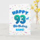 93rd Balloon Number Custom Name Birthday Card Kort