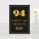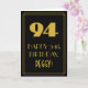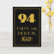 Under 1920-talet och 1930-talet inspirerades stil och vintage-/återblixtkortsdesignen har ett stort konsdeco-utseende inspirerat nummer "94", budskapet "LYCKLIG 94:e BIRTHDAY", ett anpassade namn och ett gräns mönster som består av tunt linjer på framsidan. Framsidan har en bakgrund med svart färgad. Insidan har ett redigerbart hälsning-födelsedagsmeddelande, eller så kan det kanske rensas och lämnas tomt om ett meddelande ska skrivas för hand i stället. Ett sådant här redigerbart födelsedagskalkokort kan vara ett roligt sätt att leverera lite önskemål till någon som firar sin nittiofjärde födelsedag. [~Z0000499]