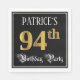 Den här pappra napkin-designen för finare och elegant har ett eget namn och meddelandet "94:e Födelsedagsfesten". Det stora talet "94th" har faux/imitation guld-inspirerad färg mönster, ord "Födelsedagsfest" är i opulent text som heter stil och bakgrunden är färgad svart som standard (även om den kan anpassas). Ogenomträngliga, lyxiga pappra blöjor av detta slag kan vara användbara om man vid en födelsedagsfest/firande hålls i firande på någons nittiofjärde födelsedag. [~Z0000565]
