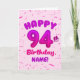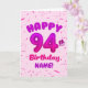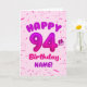 Celebrate their 94th birthday with a bright, cheerful, and personalizable birthday card! This custom name birthday card features a bold number ninety-four balloon and colorful confetti.