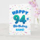 Celebrate their 94th birthday with a bright, cheerful, and personalizable birthday card! This custom name birthday card features a bold number ninety-four balloon and colorful confetti.