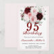 Burgunder och rosablommiga födelsedagsinbjudningar för 95-årsfirande | Burgunder vattenfärg blommig födelsedagsinbjudan för 50, 60, 70, 80, 90...alla åldrar