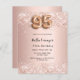 En modern, snyggt och glamorös inbjudan till 95:e födelsedagsfesten. Ro guld med konetti.namn är skrivet med ett handskript i stil. Anpassa och lägg till information om party. Nummer 95 är skript med stil som ballong. 1 lakan = 1 inbjudan tryckt kant till kant.