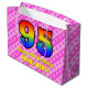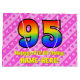 Den här roligten och den kommande 95-årsdagen av presentsäcksdesignen har ett stort nummer "95" med ett mönster inspirerat av ett regnbågsspektrum. Det innehåller också budskapet "95-årsdagen Lycklig", följt av en personlig namn. Bakgrunden har en ljus rosa och mörk rosa rand mönster som innehåller levande hjärtformer av rosa. Sådana presentsäckar kan användas när man slår in presenter eller gåvor som ges för att hedra någons 95-årsjubileum. [~Z0000414]