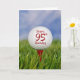 Slut upp av en vitgolfboll på en röd utslagsplats i gräs med himmelbakgrund för den 95th födelsedagen.