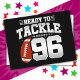 Denna fotbollsfödelsedagsdesign är perfekt för en 96:e födelsedags fotbollstema födelsedagsfest för att fira att man blir 96 år! Innehåller 'Redo att tackla 96' 96:e födelsedags fotbollscitat med fotbollsgrafik. Perfekt för alla som älskar fotboll som blir 96 år!