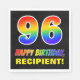 Den här roliga, färgstarka och pappra napkin-designen på roligten har ett stort nummer "96" och budskapet "GRATTIS PÅ FÖDELSEDAGEN", båda färgader med en regnbågsspektrumövertoning som inspirerade mönster, tillsammans med en fet gult anpassningsbar mottagare namn. Bakgrunden är svart på färgad. Vid firandet av någons 96-årsdag kan sådana pappra blöjor användas. [~Z0000476]