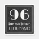 Vintagens utseende och 1920-talet/1930-talet inspirerade stil till födelsedagstecknet papper napkin-design har ett stort konst deco stil-inspirerat nummer "96", meddelandet "Lycklig 96:e födelsedag", ett eget namn och ett gräns mönster som består av tunt linjer. Roligt, redigerbar födelsedag med sådana pappra servetter kan användas på någons nittiosjätte födelsedagsfest. [~Z0000461]