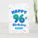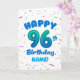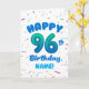 Celebrate their 96th birthday with a bright, cheerful, and personalizable birthday card! This custom name birthday card features a bold number ninety-six balloon and colorful confetti.