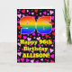 The front of this fun and happy birthday-themed greeting card design features a large number “96” having a rainbow spectrum gradient inspired pattern. It also features the message “Happy 96th Birthday,”, and a customizable name. The background of the front features a pattern of pink, red, and purple heart shapes of various sizes. The inside has a customized birthday greeting message, or could perhaps be cleared and left blank if a message is to be written by hand instead. A fun, customized birthday greeting card like this might be a fun way to send a birthday greeting message to somebody who is celebrating their ninety-sixth birthday. [~Z0000551]