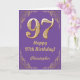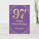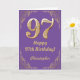 97-årsfirande lila och guld glitterram. För ytterligare anpassning, klicka på "Anpassa"-knappen och använd vårt designverktyg för att ändra denna mall.