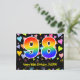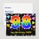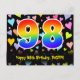 Framsidan av denna roliga, kärleksfulla och spännande födelsedagskortdesign har en stor siffra "98" med ett regnbågsspektrum-gradering inspirerat mönster. Den har också meddelandet "Grattis på 98-årsdagen," och ett anpassningsbart mottagarnamn. Framsidan har dessutom en livfull och färgrik bakgrund med ett mönster av kärleksfulla hjärtformer. Baksidan har ett anpassningsbart födelsedagsmeddelande, eller kan kanske rensas och lämnas tom om ett meddelande ska skrivas för hand istället. Ett anpassningsbart födelsedagskort som detta kan vara ett roligt sätt att skicka ett meddelande för att fira någon som fyller 98 år. Postkort som detta kan också användas för att bjuda in gäster till en födelsedagsfest eller ett party