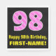 Den här glatta och roligt födelsedagskalan med den pappra napkin-designen har ett stort nummer "98" som har en strimlad mönster som innehåller hjärtformer som ger färgadens mörk rosa och ljus rosa . Det innehåller också hälsning-födelsedagsmeddelandet "Lycklig 98:e födelsedag" och ett eget namn. Pappra servetter som denna kan vara roligt till använda på någons 98:e födelsedagsfest eller firande. Det kan också vara ett val av roligt för någon vars födelsedag infaller den fjortonde feberdagen (Alla hjärtans dag) på grund av dess kärleksfulla hjärtsymboler och färg. [~Z0000436]