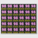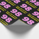 Den här glatta och roligt födelsedagskalemetterade pappra designen har ett stort nummer "98" med en rand mönster som innehåller hjärtformer som färgadens rosa av mörk och ljus rosa. Det innehåller också hälsning:s födelsedagsmeddelande "Lycklig 98:e födelsedag", och en personlig-mottagare namn. Födelsedag som är papper som detta kan användas när en gåva eller present i firande på någons nittioåttonde födelsedag är ge. Det kan också vara ett val av roligt för någon vars födelsedag infaller på Alla hjärtans dag (14 februari), på grund av dess kärleksfulla hjärtsymboler och färg. [~Z0000435]