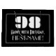 Den här vintagen ser ut som "20-årsjubileet stil inspirerade till födelsedagskalkens presentsäckskonstruktion har en stor konst deco stil inspirerat nummer "98", meddelandet "98:e födelsedagen i Lycklig", en personlig namn och en gräns mönster som består av tunn linjer. Den har en bakgrund med svart färgad. En dylik presentpåse på födelsedagen kan användas för att figurera en gåva eller present som ges för att fira någons nittioåttonde födelsedag. [~Z0000495]