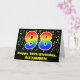 Den här roligten, en levande och spännande gratulationskortsdesign för födelsedag har ett stort nummer "98" med en regnbågsspektrumövertoning som inspirerade mönster. Det innehåller också budskapet "98:e födelsedagen i Lycklig" och en anpassningsbar som tar emot namn. På framsidan finns också en mönster med olika musik noter och symboler med olika färg och storlekar. Insidan innehåller ett hälsning-meddelande från personligens födelsedag, eller kan kanske tas bort och lämnas tomt om ett meddelande ska skrivas för hand i stället. Ett redigerbart gratulationskort för födelsedagen kan skickas för att fira en sångares, en musikkompositörs, en musikers eller någon annans nittioåttonde födelsedag. [~Z0000426]