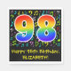 Den här roligten, den levande och färgstarka födelsedagstexten med den pappra napkindesignen har ett stort nummer "98" med en regnbågsspektrumövertoning som inspirerade mönster, tillsammans med meddelandet "98:e födelsedagen i Lycklig" och en personlig namn. En del av bakgrunden har ett mönster med olika musik noter och symboler med olika färg och storlekar. På födelsedagen kan sådana pappra blöjor användas när man firar en musikers, en sångares, en kompositörs eller någon annans 98-årsdag. [~Z0000421]
