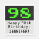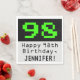 Den pappra napkin-designen med roligt och napkin-format har en stor vintage-videospelnummer stil 98 på en svart färgads bakgrund. Det innehåller också hälsning:s födelsedagsmeddelande "98:e födelsedag i Lycklig" och ett namn som kan vara personlig. Roligt och nonsens pappra servetter som denna kan vara användbara vid en party som hålls för att fira 98-årsdagen för en vetenskapsman, en ingenjör, eller någon som verkligen gillar att spela i nya datorer. [~Z0000404]
