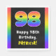 Den pappra napkin-designen med ett stort nummer "98" med ett färgstarkt regnbågsspektrum som inspirerar till gradient mönster, tillsammans med meddelandet "Lycklig 98:e födelsedagen", och anpassadet namn. Födelsedag som pappra servetter som detta kan vara roligt till använda vid en födelsedagsfest som hålls för någon som firar sin 98-årsdag. [~Z0000629]