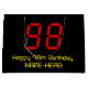 Den här nonsens och roligtens födelsedagskalemerade presentsäcksdesignen har ett stort nummer "98" med ett rött digitalt visning som inspirerats av utseendet, tillsammans med meddelandet "Lycklig 98:e födelsedag" och ett redigerbart namn i gult av geeky retro stil, på en svart färgad. En personlig presentsäck av detta slag kan användas när man slår in presenter eller gåvor som ges för att hedra någons nittioåttonde födelsedag. [~Z0000389]