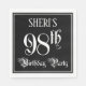 Den pappra napkin-designen som är utvecklad och lyxig och har födelsetecknet personlig namn och meddelandet "98:e Födelsedagsfesten". Det stora talet "98th" och ord "Födelsedagsfest" står i elegant manustext-stil. Bakgrunden är färgadens svarta som standard (även om den kan anpassas). Luxuriga, opulenta pappra blöjor som denna kan vara användbara vid en födelsedagskalender som hålls i firande på någons 98-årsdag. [~Z0000563]