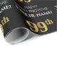 Den här eleganten och den lyxiga pappra inslagningen med födelsedagstext har texten "LYCKLIG 99:e BIRTHDAY", ett anpassade namn, och födelsedagsnumret "99:e" med ett faux/imitation guld inspirerat utseende mönster. Bakgrunden är svart på färgad. Papper som denna kan användas när man slår in presenter som ges för att fira någons 99-årsdag. [~Z0000454]