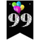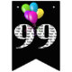 Fet 99-nummer i svartvitt på svart bakgrund med färgstarka ballonger i 99:e födelsedagsfesten