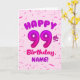 Celebrate their 99th birthday with a bright, cheerful, and personalizable birthday card! This custom name birthday card features a bold number ninety-nine balloon and colorful confetti.