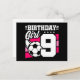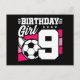 Denna fotbollstema-födelsedagsdesign är perfekt för en 9-årig flickas fotbollstematiska födelsedagsfest för att fira hennes 9-årsdag! Bra för barn som älskar att spela fotboll, titta på fotboll eller framtida fotbollsstjärnor! Designen har en fotboll på en fotbollsplan med siffran 9 för en flickas 9-årsdag.