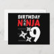 9 Årig Ninja-feststjärnor Kids 9-årsdag Vykort
