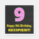 Den här roligten och den glatta födelsedagskalematerade pappra napkin-designen har ett stort nummer "9" med hjärtformer som innehåller mörk rosa och ljus rosa rand mönster. Det innehåller också hälsning:s födelsedagsmeddelande "Lycklig 9:e födelsedag" och ett redigerbart namn. Pappra servetter som denna kan vara roligt till använda vid någons nionde födelsedagskalender. [~Z0000436]