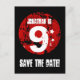 9:e födelsedag Spara datum Röd svart bläckstråle A Meddelande Vykort