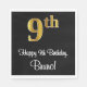 Den här sofistikerade pappra napkindesignen med elegant och lyxig födelsedag har ett stort ordnummer "9th" som har ett utseende som präglas av faux/imitation guld, plus hälsning-födelsedagsmeddelandet "Lycklig 9:e födelsedag" och ett eget namn i ett typsnitt av typen script-stil. Bakgrunden är svart på färgad. Sofistikerad födelsedag pappra blöjor av det här slaget kan användas vid en födelsedagsfest i firande på någons nionde födelsedag. [~Z0000516]