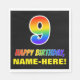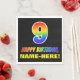 Den färgstarka, roligt- och fräcka födelsedagstecknet papper napkin-design har ett stort nummer "9" och meddelandet "GRATTIS PÅ FÖDELSEDAGEN,", som båda har en regnbågsspektrumövertoning som inspirerade mönster-färgning, tillsammans med en fet gult redigerbar mottagare av namn. Bakgrunden är svart på färgad. Vid firandet av någons nionde födelsedag kan sådana pappra servetter användas. [~Z0000476]