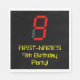 Den här pappra napkin-designen med hög födelsedagspressning har ett stort nummer "9" med ett rött digitalt visning med sju segment som inspirerats av utseendet, tillsammans med en personlig namn och meddelandet "9:e Födelsedagsfesten!" i naveltexten i stil, på en svart färgad. Roligt, personlig pappra blöjor av det här slaget kan användas vid en party som hålls för att fira någons nionde födelsedag. [~Z0000388]