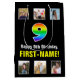 Den glatta presentsäcksdesignen på födelsedagen har ett stort nummer "9" med ett dynamiskt regnbågsspektrum som inspirerar gradienten mönster, tillsammans med meddelandet "Lycklig 9:e födelsedagen" och en redigerbar mottagare namn. Fotografierna ovanför och under meddelandet kan vara personlig, kanske med foton av mottagaren, mottagarens familj och vänner och/eller presentens avsändare. En dylik presentpåse på födelsedagen kan användas när en gåva eller present i firande på någons nionde födelsedag är ge. (Photography © Storytree Studios, Stanford, CA.) [~Z0000669]