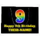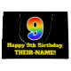 Den här roligten och den färgstarka presentsäcksdesignen på födelsedagen har ett stort nummer "9" med en regnbågsspektrumövertoning som inspirerade mönster, tillsammans med meddelandet "Lycklig 9:e födelsedag" och en personlig namn. Den har också en bakgrund med svart färgad. En presentpåse som denna kan vara ett roligt sätt att fylla på en födelsedagspresent eller gåva som ges till någon som firar sin nionde födelsedag. [~Z0000521]