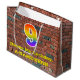 Den här färgstarka och roligt födelsedagskalans tematiska presentsäckskonstruktion, inspirerad av gatukonst, har ett stort nummer "9" med en regnbågsspektrumövertoning inspirerad mönster. Det innehåller också budskapet "Lycklig 9:e födelsedag" och ett anpassade namn. Den har också en tegelvägg stil mönster som bakgrund. En presentsäck som den här kan användas när man slår in gåvor som ges till någon i firande på deras nionde födelsedag. [~Z0000522]