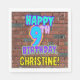 Den här roligtens födelsedag, den pappra napkindesignen, innehåller meddelandet "LYCKLIG 9 BIRTHDAY" med ett sjudande, färgstarkt, graffiti-inspirerat utseende, förutom en personlig mottagare namn. Bakgrunden är en mönster som inspirerats av en tegelvägg. Födelsedagen som den här pappra servetten kan vara roligt till använda vid en party som hålls för någon som firar sin nionde födelsedag. [~Z0000534]