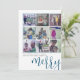 FRONT DESIGN: En samling med 9 foton i ett enkelt rutnät för att markera många bilder från det senaste året. Fotorutnätet är av från mitten med ett tunt gräns som omger fotona. Ett modernt sätt att söka efter ett fotokort med denim blue färgad accents och "merry" i ett stort, trendig, skript-teckensnitt. Bakgrunden är vit. BAKKONSTRUKTION: Bakgrundsdesignen innehåller ett block mönster i blå nyans. Du kan ändra färg i det avancerade designområdet.