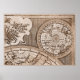 9 Panel Sepia Version de L'Isle World Map Ram 3 Poster