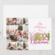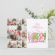 9 Photo Pink Green Bow Tree Merry Christmas Julkort