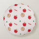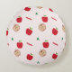Rött äpple med text på rosa bakgrundsmönsterdesign.